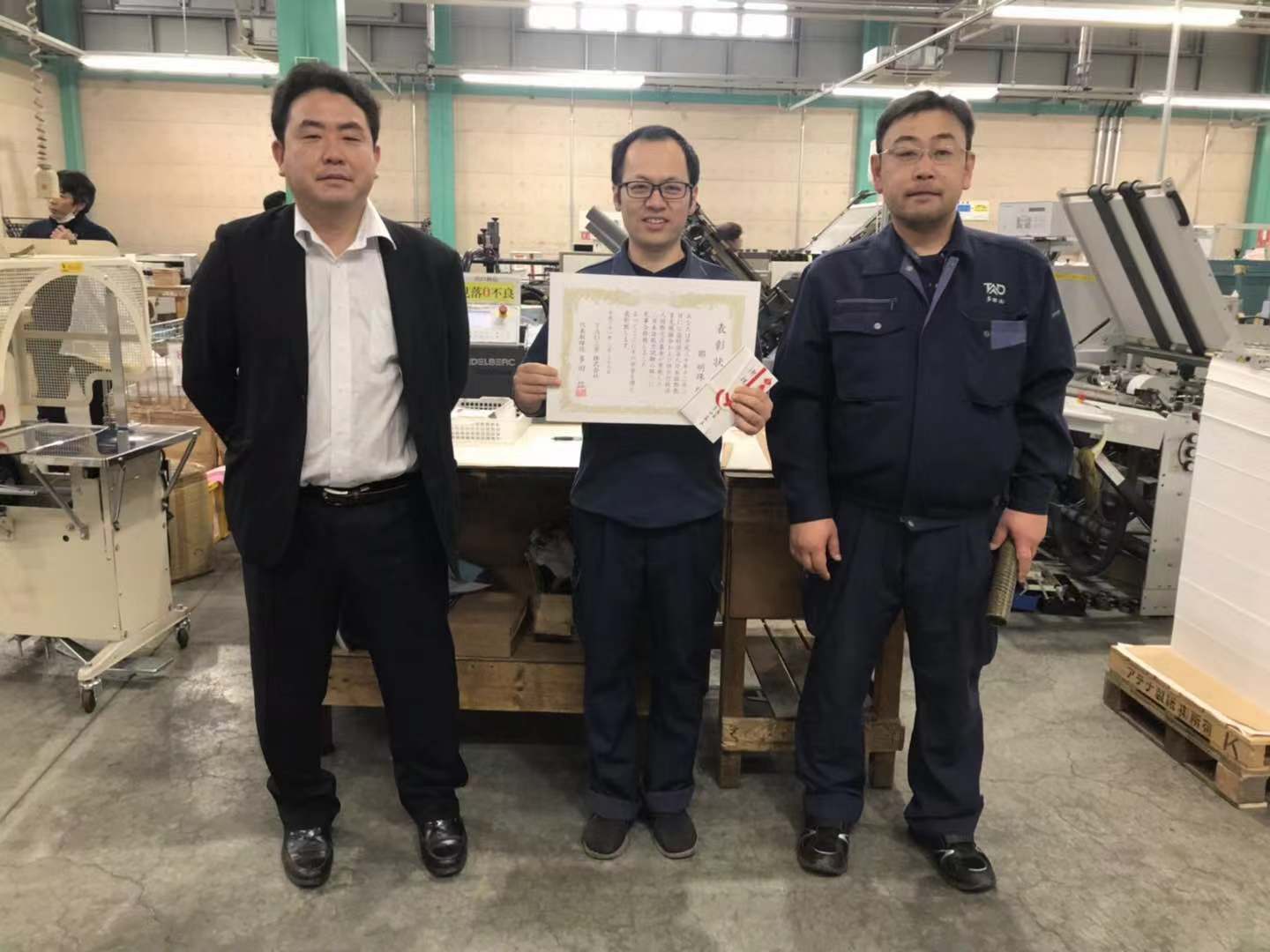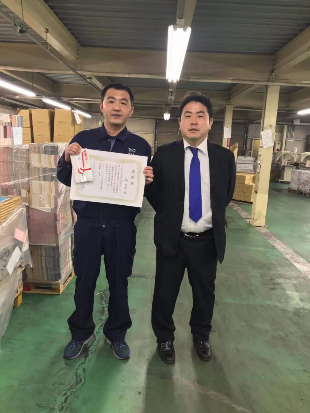 在日本兩名技能實習(xí)生順利通過二級日語考試,受到日方會社的表彰,與會社領(lǐng)導(dǎo)合影留念。